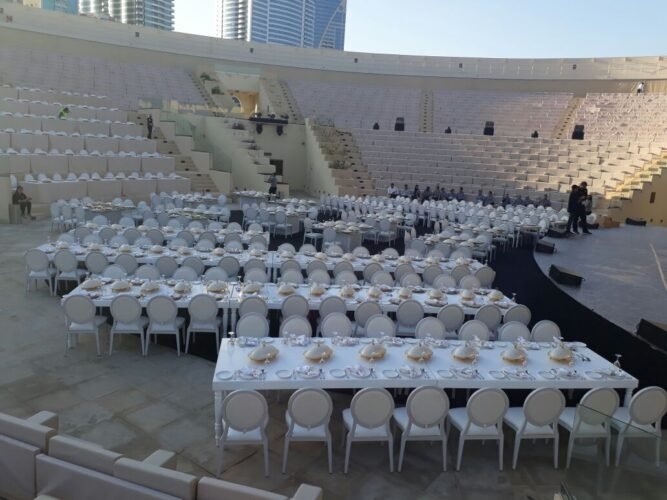 The Avalon Grand 10 Seater Dining Table – White is available for rent in Dubai, Abu Dhabi and UAE. This table is perfect for weddings and VIP events and gala dinners. Pair with the Dior Dining Chair for the perfect set up. Contact us now to order the Avalon Grand 10 Seater Dining Table – White or for any other event furniture need.