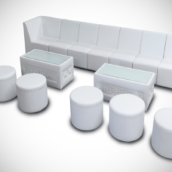 The Chameleon Streak Sofa Set consists of the Chameleon Single Chair and the Chameleon Corner Chair and is part of the Chameleon Lounge Collection. It is available per set and is perfect for large gatherings. It is customisable to any color and is adjustable to any length and quantity. Available for rent or sale in Dubai, Abu Dhabi and UAE. Contact us now to order the Chameleon Streak Sofa Set or for any other event furniture need.
