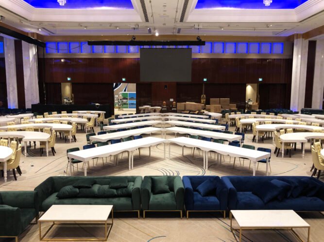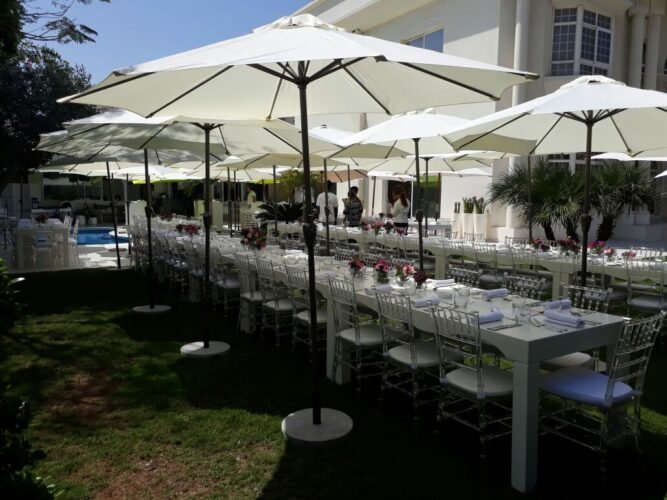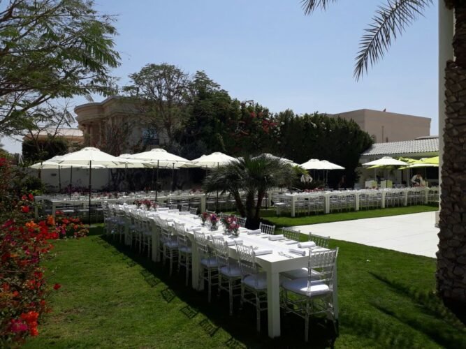 The Clementine Dining Table with Round Legs is available for rent within Dubai, Abu Dhabi and the UAE. It’s unique removable acrylic top opens up a whole new design level! This detail gives a distinct accent that sets it above most dining tables – a hollow center strip where you can put lights or candles to add a warm and colorful glow to your event or bring the outside in with flowers or you can let your creativity flow and decorate as you like! Pair with the Clear Acrylic Chiavari Chair for the perfect set up. Contact us now to order the Clementine Dining Table with Round Legs and for any and all of your event furniture needs, from brunches to luncheons to gala dinners and even exhibitions!