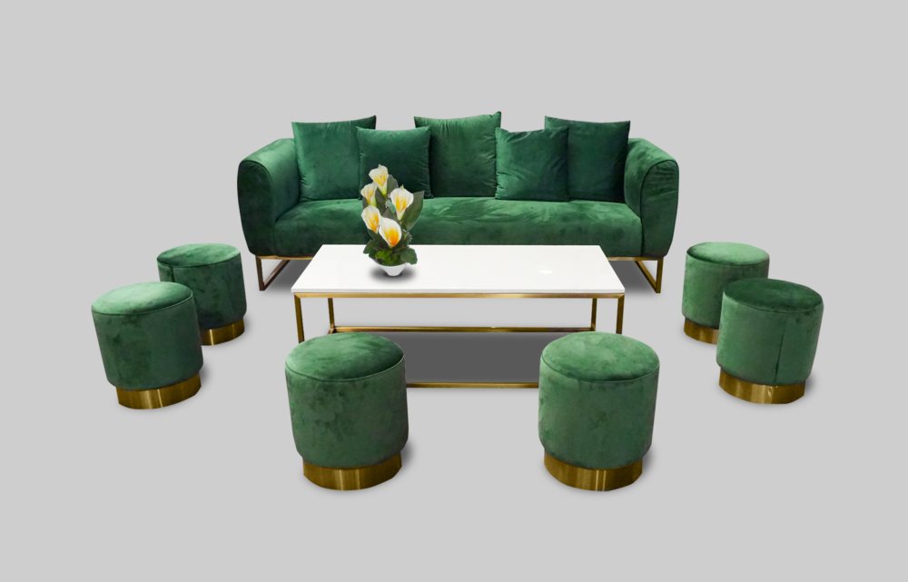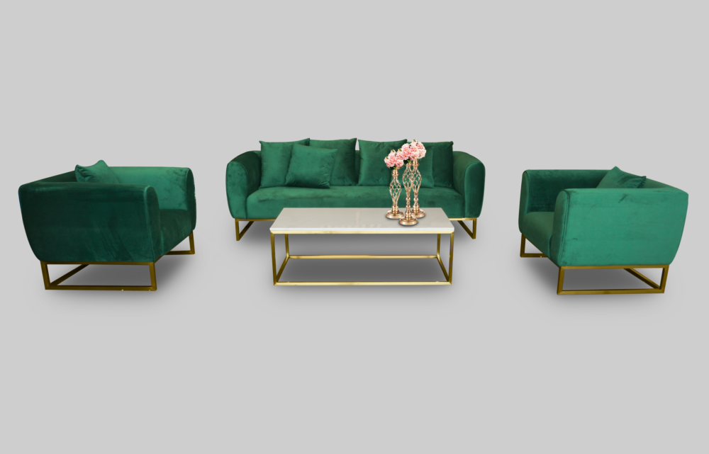 The Eleganza Velvet 3 Seater Sofa – Green is available for rent in Dubai, Abu Dhabi and UAE. This sofa is perfect for VIP events with its plush velvet fabric. Also great for private parties, weddings and corporate events. Pair with the Mallorca Marble Cofffee Table for the perfect set up. Available in BLUE and GRAY and with the full Eleganza Velvet Collection. Contact us now to order the Eleganza Velvet 3 Seater Sofa – Green or for any other event furniture need.