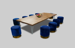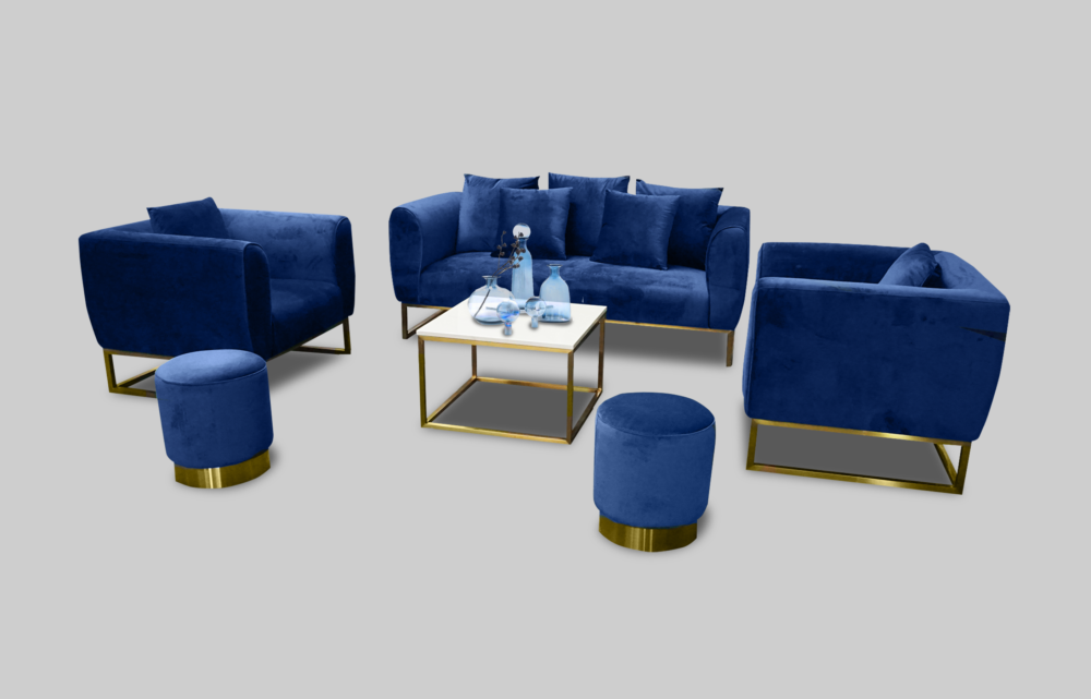 The Eleganza Velvet Round Pouffe – Blue is available for rent in Dubai, Abu Dhabi, UAE, GCC. This ottoman is perfect for lounge seating, gala events, exhibitions, VIP events. Also available in GREEN. Use with our Halo Round Coffee Table for the perfect set up. Contact us now to order the Eleganza Velvet Round Pouffe – Blue or for any other event furniture need or visit our INSTAGRAM page for set up inspiration.