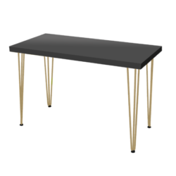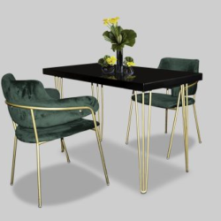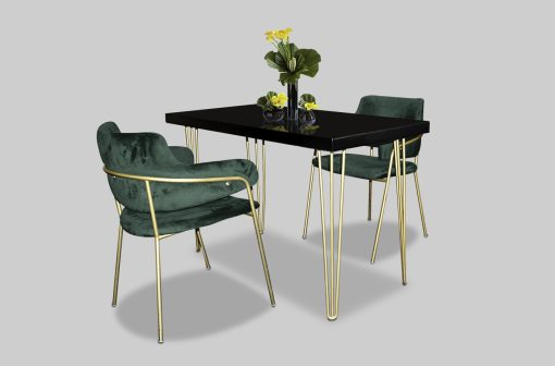 Hairpin Rectangular Black Dining Table, Gold Legs for rent in Dubai, Abu Dhabi, UAE, GCC. This cafe table is great for exhibitions, outdoor events, cafe set up. Pair with the Eleganza Velvet Chair – Gray for the perfect set up. Contact us now to order the Hairpin Rectangular Black Dining Table, Gold Legs or for any other event furniture need or visit our INSTAGRAM page for set up inspiration.