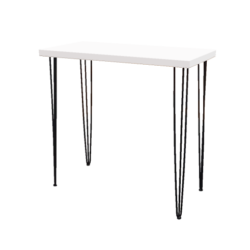 Hairpin Rectangular White High Table, Black Legs for rent in Dubai, Abu Dhabi, UAE, GCC. This cocktail table is great for outdoor events, exhibitions and cocktail parties. Pair with the Pauchard Metal Bar Stool – White for the perfect set up. Also available as a COFFEE TABLE and as a DINING TABLE. Contact us now to order the Hairpin Rectangular White High Table, Black Legs or for any other event furniture need or visit our INSTAGRAM page for set up inspiration.