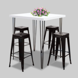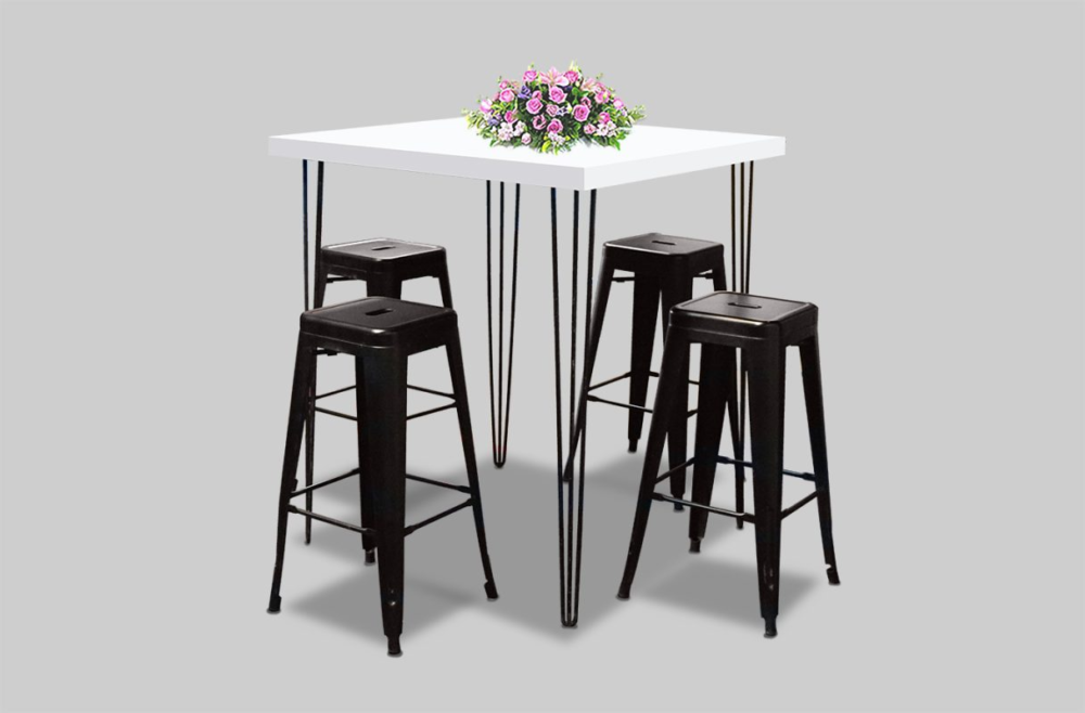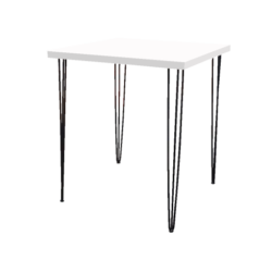 Hairpin Square White High Table, Black Legs for rent in Dubai, Abu Dhabi, UAE, GCC. This bar table is great for exhibitions, outdoor events, cocktail parties. Pair with the Pauchard Metal Bar Chair – White for the perfect set up. Also available as a COFFEE TABLE and as a DINING TABLE. Contact us now to order the Hairpin Square White High Table, Black Legs or for any other event furniture need.