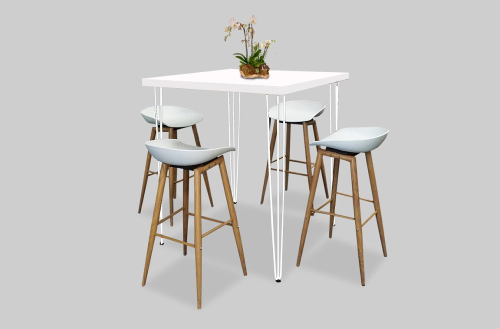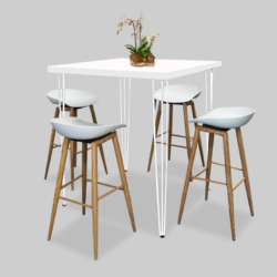 Hairpin Square White High Table for rent in Dubai, Abu Dhabi, UAE, GCC. This high table is great for exhibitions, outdoor events and cocktail parties. Pair with the Pauchard Metal Bar Stool – White for the perfect set up. Also available as a COFFEE TABLE. Contact us now to order the Hairpin Square White High Table or for any other event furniture need or visit our INSTAGRAM page for set up inspiration.