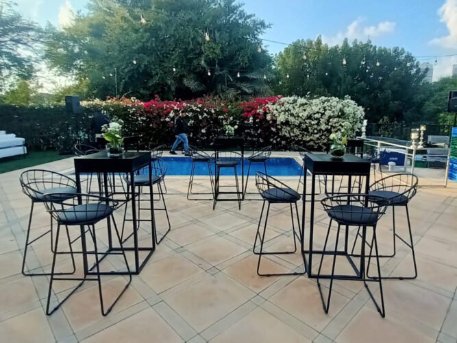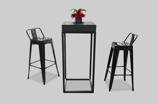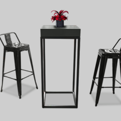 The Menorca Black High Table for rent in Dubai, Abu Dhabi, UAE, GCC. This bar table is perfect for VIP events, gala events, exhibitions, outdoor events. Pair with the Pauchard Metal High Stool – Black for the perfect set up. Also available as a SIDE TABLE. Contact us now to order the Menorca Black High Table or for any other event furniture need or visit our INSTAGRAM page for set up inspiration.