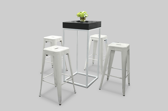 The Menorca White High Table with Black Top is available for rent in Dubai, Abu Dhabi, UAE, GCC. This cocktail table with its white metal base and black wooden top is perfect for black and white parties, exhibitions, corporate events and even private events. Pair with the Florence Black Wire Barstool for the perfect set up. Also available as a SIDE TABLE. Contact us now to order the Menorca White High Table with Black Top or for any other event furniture need or visit our INSTAGRAM page for set up inspiration.