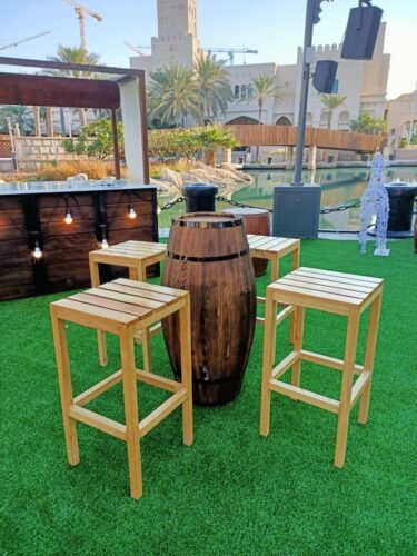 The Provinzia Wooden Barrel Cocktail Table is available for rent in Dubai, Abu Dhabi and UAE. Perfect for cocktail parties, weddings, and other outdoor and rustic event set up. Pair with the Brant Wooden Bar Stool for the perfect set up. Contact us now to order the Provinzia Wooden Barrel Cocktail Table or for any other event furniture need.