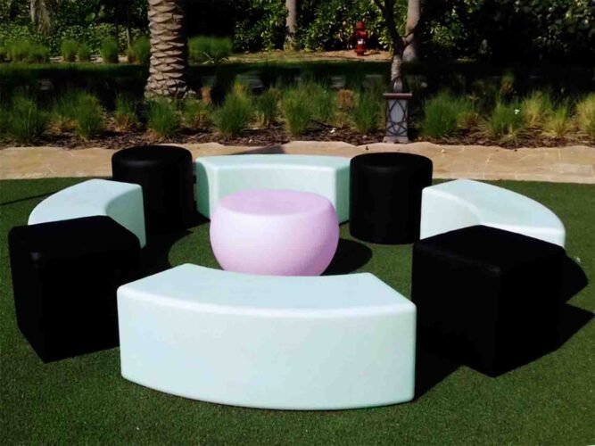 The Crescent LED Lounge Chair is available for rent in Dubai, Abu Dhabi, and across the UAE and GCC. This stunning illuminated chair creates a vibrant atmosphere, making it perfect for outdoor events, pool parties, gala dinners, garden gatherings, and private celebrations.