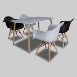 Scandinavian Rectangular Dining Table is available for rent in Dubai, Abu Dhabi, UAE, GCC. Goes well with the Scandinavian Armchair or the Scandinavian Chair. Perfect for classroom set up, exhibitions and cafe set up. Also available as a HIGH TABLE. Contact us now to order the Scandinavian Rectangular Dining Table or for any other event furniture need.